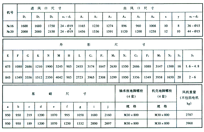 五、4-68No16、20B 离心通风机安装及外形尺寸表